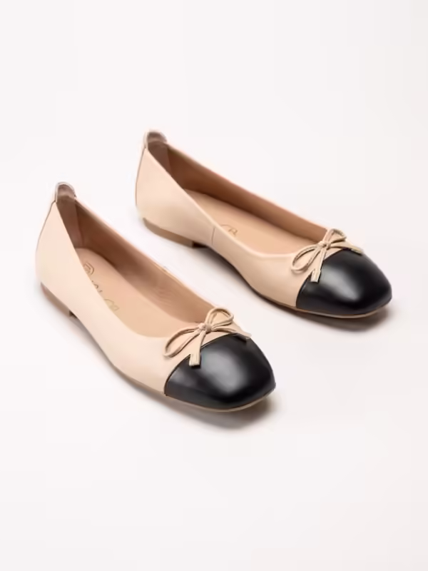 Beige ballerinaskor i skinn från Unisa. Klassiska ballerinaskor med en låg klack.