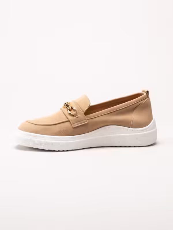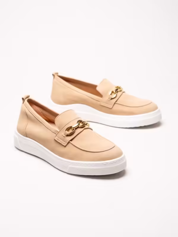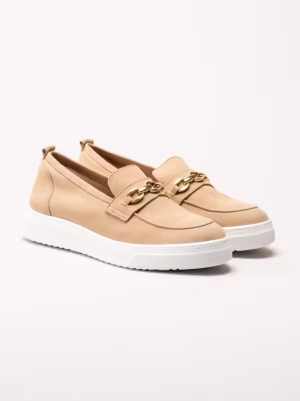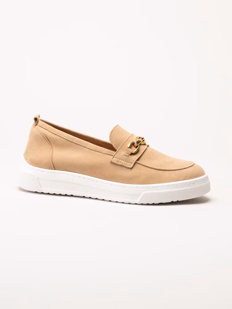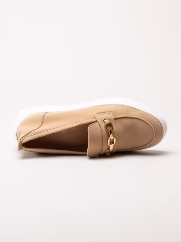 Beige loafers från Unisa. Otroligt sköna loafers med dekorativ guldfärgade länk på ovansidan.